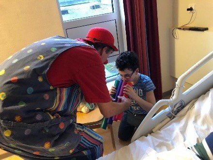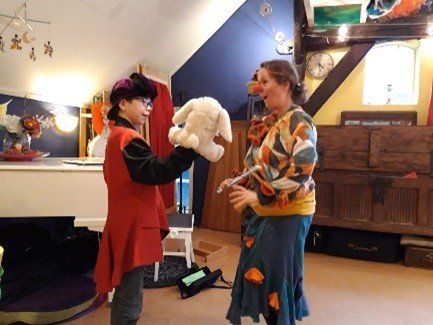 Op woensdag 2 december 2020 was onze eerste ontmoeting met de rouwclowns. Ieder kind had zijn eigen clown tot zijn beschikking. Terwijl het nog wat onwennig was, zag ik mijn jongens al gauw los komen en lekker spelen. De interactie die de clowns met de jongens hadden, was geweldig om te zien. Ze volgden ze helemaal in hun spel. Ik zag de jongens steeds vrijer meedoen. Ze speelden, dansten, maakten muziek en vooral zag ik ze genieten. Even een zorgeloos moment in een moeilijke periode. Wij als ouders genoten van alles wat we zagen. Maar… ook mijn man kreeg nog een rol. Hij mocht laten weten, waar hij nog graag met zijn gezin naar toe zou willen, als alles mogelijk was en er geen beperkingen waren. Dit zou EuroDisney zijn! Gelijk werd ons beloofd dat we daar dan de volgende keer, door middel van spel, naar toe zouden gaan.